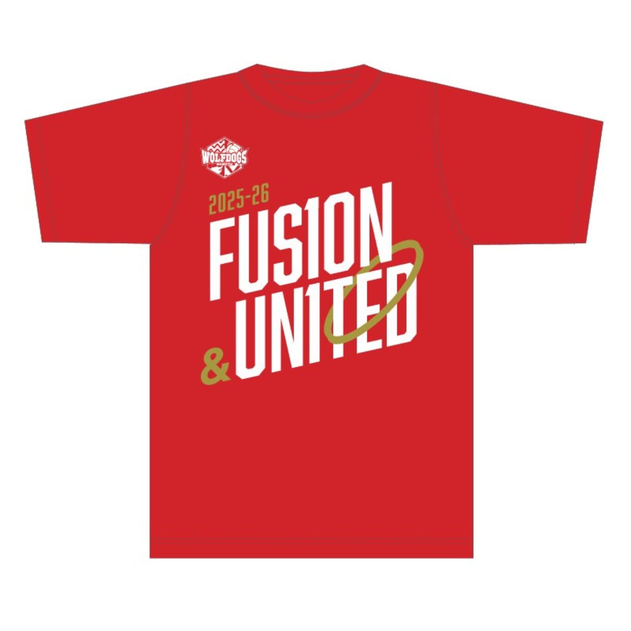 25-26シーズンのチームスローガン「FUSION & UNITED」がプリントされた応援Tシャツです。